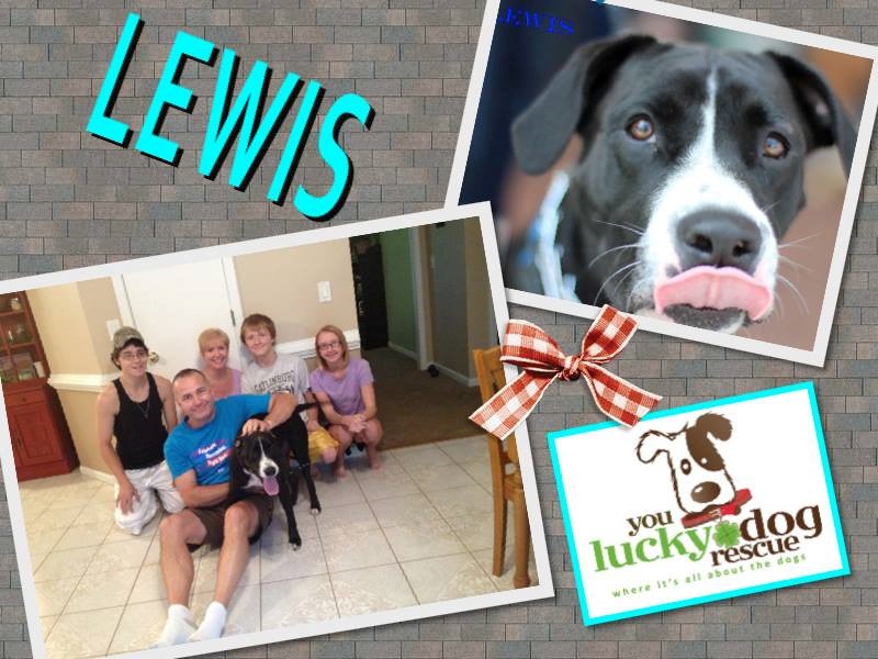 When Lewis was rescued, he had a broken leg. It was a long road to recovery, but LEWIS stayed strong and determined to get better and find his forever home. With a loving foster family to make sure he got the care he deserved (thank you, Brehl family!), Lewis flourished and grew stronger with each passing day. Because of his injury, it has taken LEWIS a while to find his furever home, but his day has come! Just look at how happy he is! The Shoemaker's were waiting for LEWIS; and Lewis was waiting for them! Be Happy, LEWIS!