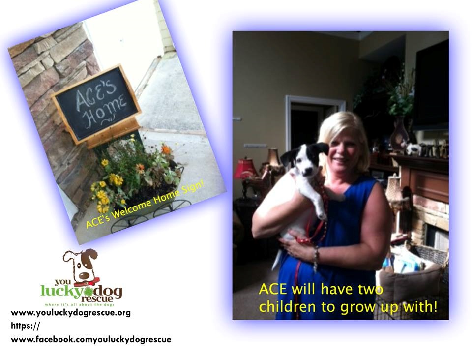 ACE was welcomed to his new home with his very own welcome sign! What a way to start his new life with Erin G. and family. ACE will have two children to keep him busy. Thank you Erin G. and family for adopting a rescue pup. Be happy, ACE!