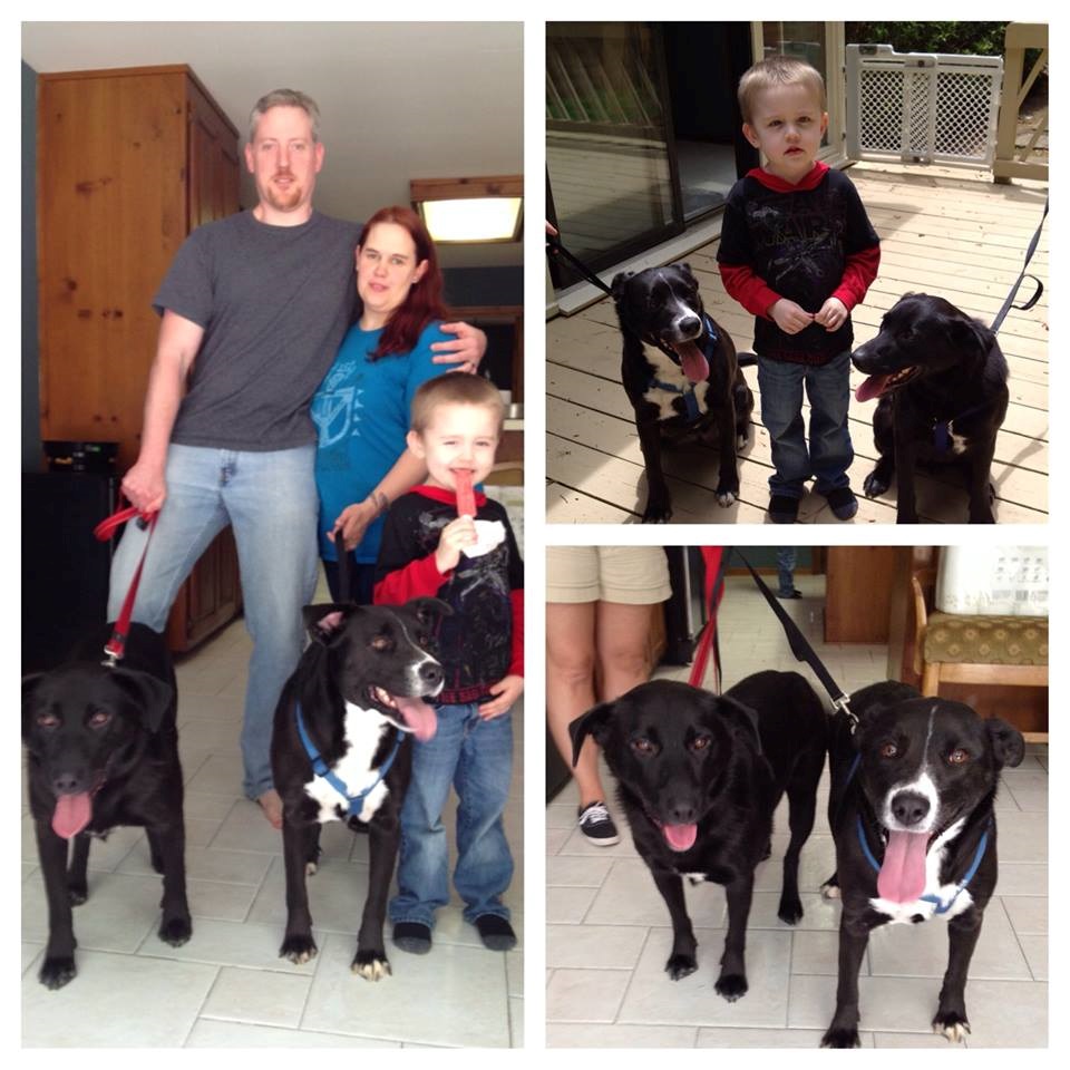 And since MAY is BACK IN BLACK month in concert with Best Friends Society, how about a HAPPY EVFUR AFTER for a great black dog - MAXWELL. He is now the forever furry member of the Jennings Family. With a fur sister and two human siblings. We know why MAXWELL (solid black w/red leash) has that smile on his face! Thanks to Jen S. and family (first time fosters) for helping Maxwell find his forever happiness.