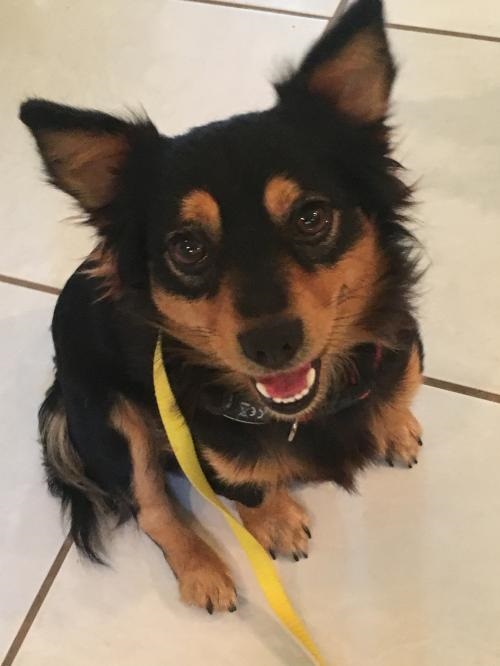 It is very difficult to tell what breed mix the little guy is but we are guessing long haired Chihuahua; long haired dachshund; and maybe even some Corgi? He weighs about 12-15 pounds. We are looking for a very special adopter that will love him forever and make him a part of their family. If there are children in the home, he will do very well, however, because of his size they should probably be 5 years old at least. We’d prefer that he not go into a home where everyone works full time and he is left all day. Little guy needs lots of love and chances to go out an potty and play throughout the day. We would never want him to be left unattended outside either. He must always be supervised and taken good care of. He is very special to all of us that know and love him and we are very protective.