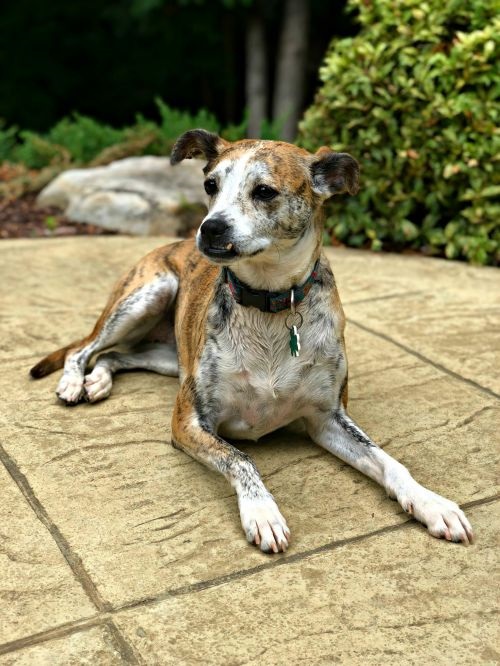 No one is quite sure what blend of puppy dog I am – I think I must have some whippet/greyhound in me and maybe a little Chihuahua. I weigh about 27 pounds – that’s what I call the perfectly sized pup. I have doe-like eyes, a white face and coloring that makes me look like a cheetah. (That fits because I can run like the wind) Whatever I am, everyone tells me I’m very pretty.