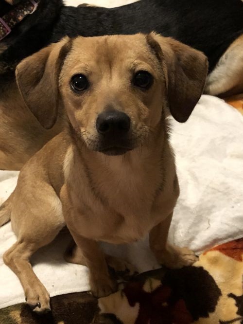 Meet Little Miss Big Stuff, Amina! She is the sister to Chesna, so please go check out her bio when you’re done here. We know it may be challenging to keep these sisters together, but they are bonded and we’d like to try. They were both so scared in the shelter environment and it was heartbreaking, but at least they had each other. Fast forward to today! With some patience and guidance, these girls are so happy and playful knowing they are safe and loved. Amina is a chihuahua/dachshund mix and weighed 12 pounds on her recent vet visit. The vet believes she is approximately 1 year old. Amina loves to play with other dogs, even big ones as long as they are friendly and not too rough. Playtime with toys, sticks and balls in their foster home’s fenced-in backyard is her most favorite activity. We are currently working on potty-training and with structure, she will pick it up in no time. Amina loves her crate and keeps it clean and accident free.