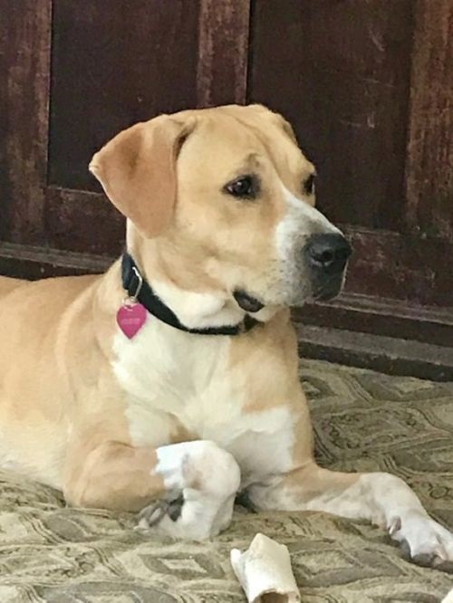 We believe LUCY LOO to be a Labrador Retriever Mix. Her estimated DOB is 7/13/18, and she weighs about 45 pounds.