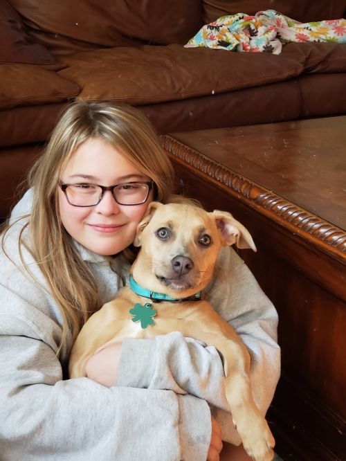Kelani (her foster family calls her KeKe) is in a foster home with a teenager as well as small and large dogs, and she does great with all of them. She is crate trained and house trained. She is very food motivated and very trainable. There are always laughs at meal time as she does her happy dance and runs gleefully to her crate and sits like she has been taught, awaiting her meal. She is a sucker for treats and sits very nicely and patiently for her turn for treats alongside her 4 canine foster sisters.