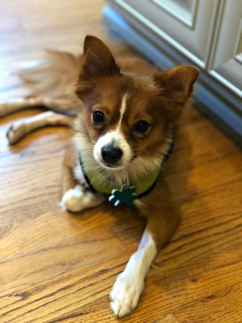This oh so handsome guy is Jake Roo. He is a Pomeranian/Papillon mix, 10 lbs and approximately 3 years old.