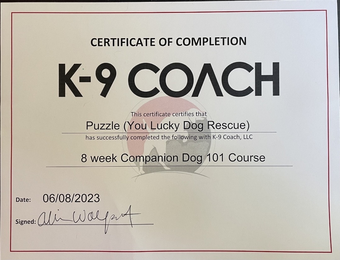 PUZZLE*Successfully completed Canine Good Citizen training!*House trained*Crate trained*Walks well on a leash*Dog friendly*Kid friendly...