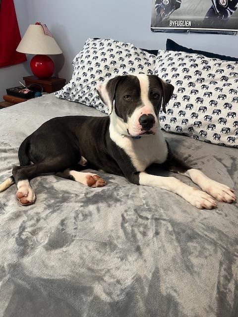 Breed: American Staffordshire TerrierBreed: Labrador RetrieverUp-to-date with routine shots: Yes