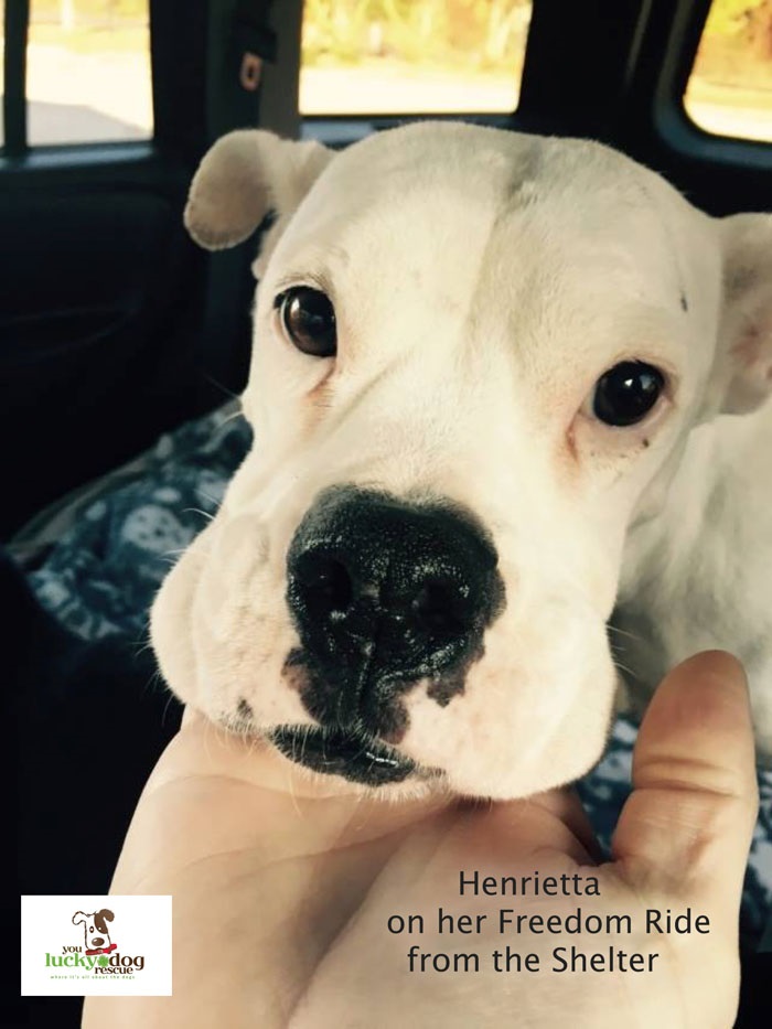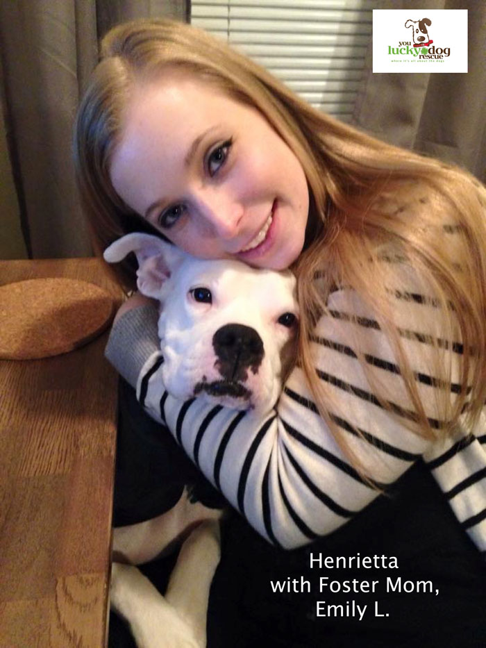 Henrietta was placed in foster care with one of You Lucky Dog Rescue’s trusted volunteers, Emily Long -
