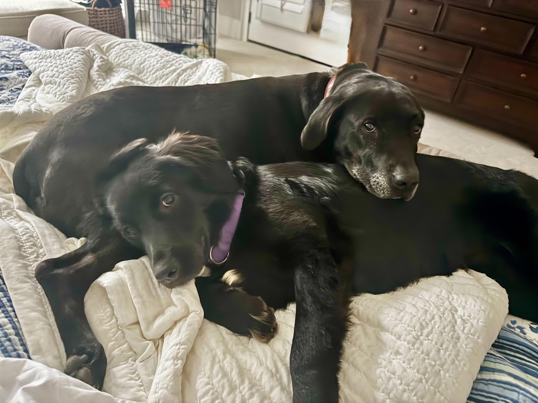 Mira does great with other dogs and currently lives with two foster siblings: a large female Lab and a small senior terrier. She especially enjoys playing with friendly dogs her own size and would thrive in a home with a fenced yard, where she can safely run, play fetch, and keep an eye out for squirrels, birds, and any “suspicious” sticks that may appear.