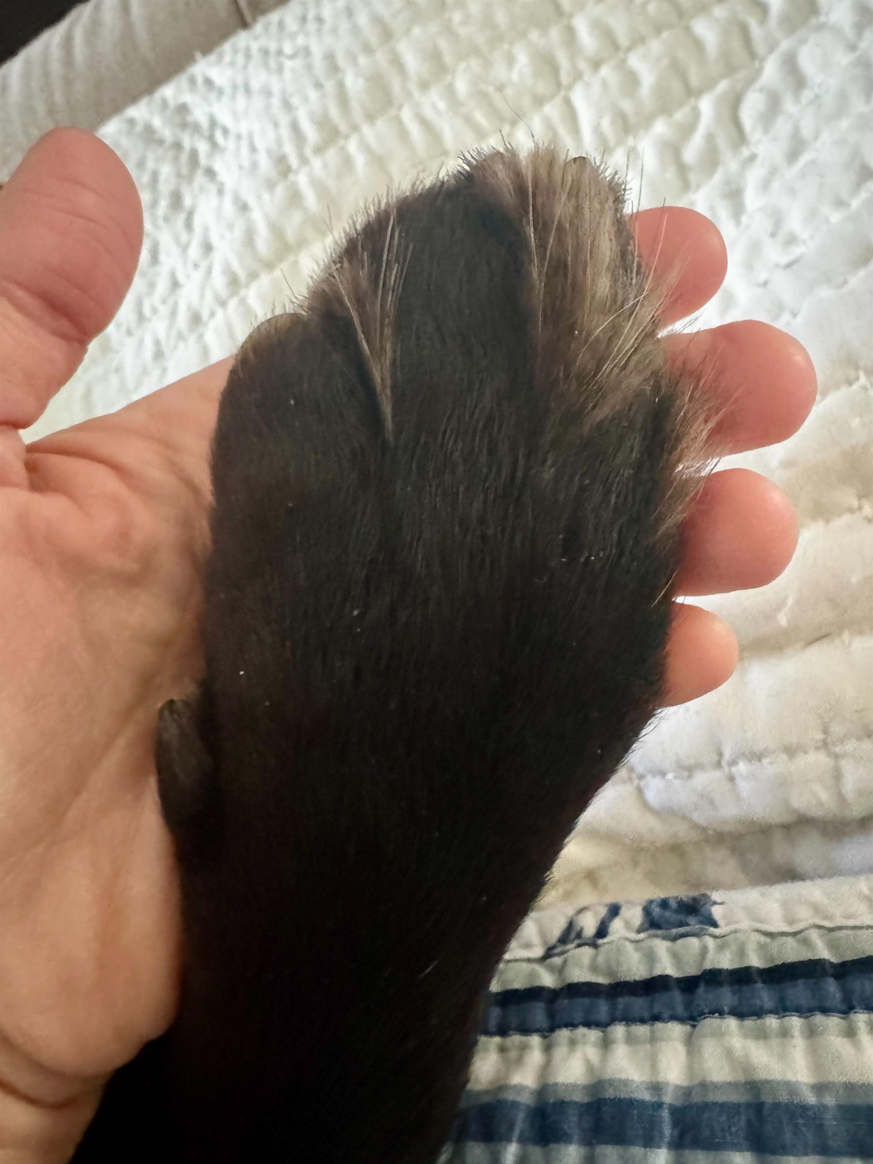 • She has a gorgeous, soft, long wavy black coat with touches of brown and white