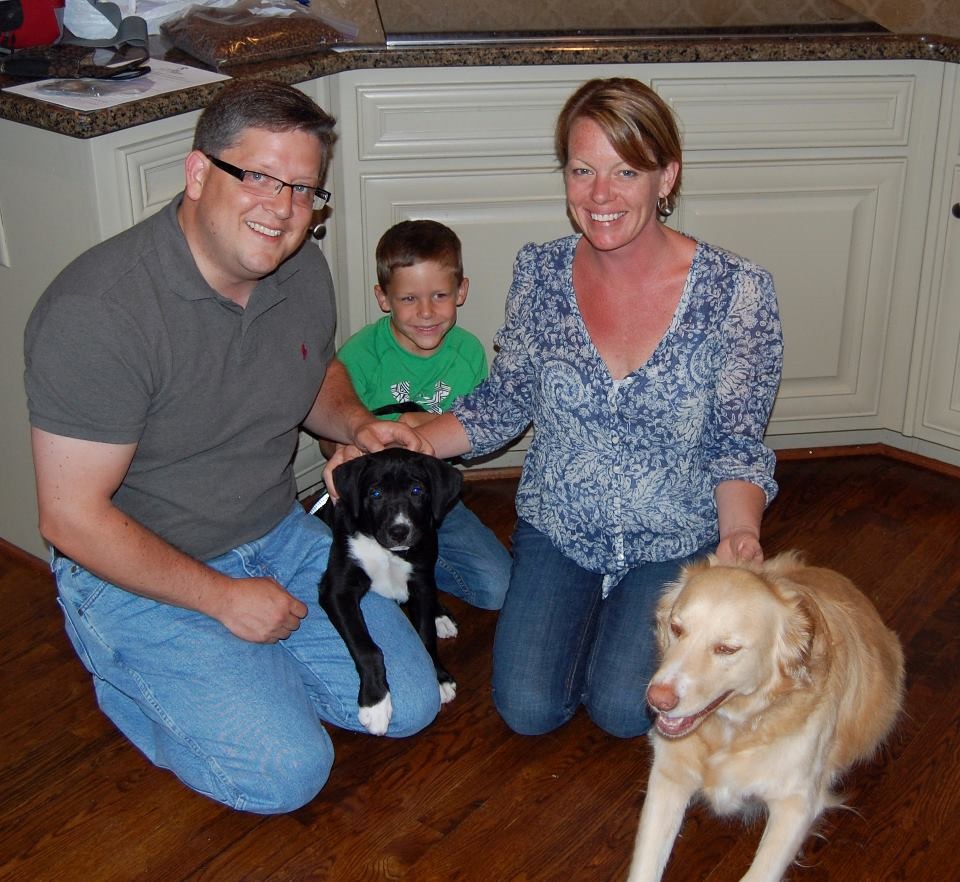 Yay for Guinness - one of Kahlua's gorgeous pups!! He scored big time with a house full of children, another doggie buddy, and a mom that will be his running partner! Have a great life sweet Guinness!!