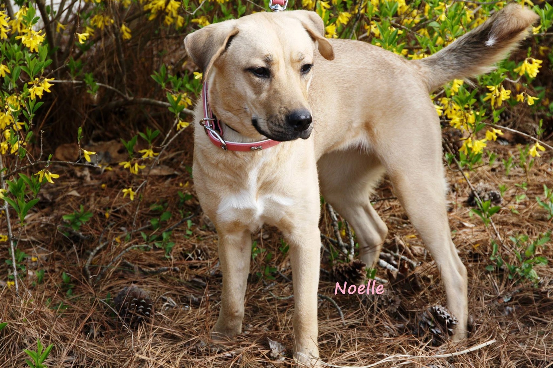 "I’m ADOPTED! Meet our newest family addition, NOELLE. This is her first photo without the 5 pins and titanium rod holding her badly broken front leg together. Spring is here in Georgia, NOELLE is almost healed and ready to run! She had surgery March 5th to remove the appliance on her leg that had been there since mid-December. Ron & I have been Fostering and caring for her since December, and she’s come a long way. NOELLE is indeed one of the lucky ones. Her life was saved by You Lucky Dog Rescue, and so many caring people who donated so she could have leg-saving surgery after being hit by a car. Poor girl was abandoned by her original owners. She wound up in an Atlanta kill shelter, where she was forgotten for 3 weeks with a plastic bag on her leg until her time was up. Few come to adopt dogs with broken legs. Once YLDR told her story on Facebook, NOELLE’S life changed and she got her Christmas miracle. A nice lady came to get her the final hour of her final day, and took her to Forsyth Animal Hospital where an excellent surgeon Dr. Avra & staff did their best work. They said she’s “a real success story!” After caring for her 24/7, seeing how she’s bonded with our other dogs, and what a sweet girl she’s been from day one we decided NOELLE could have her “happy ever after” right here with us. I know, I’m a huge Foster Fail but it can’t be helped. Some things are just meant to be." ~ Susan