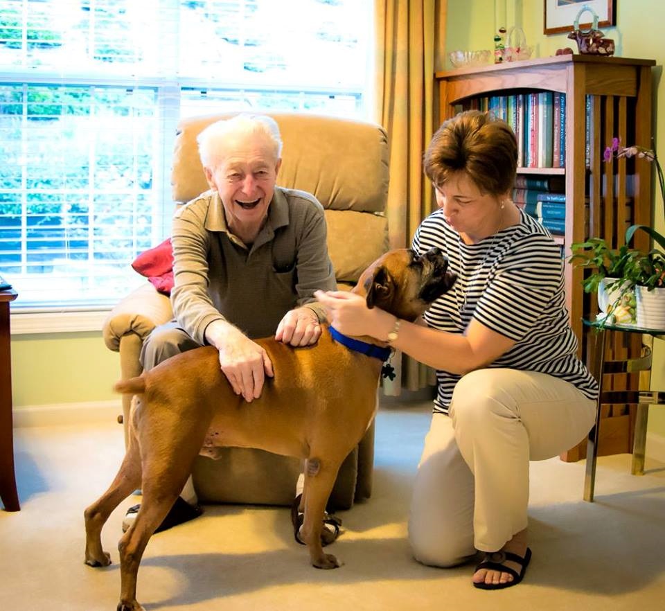 Don't you just love this photo? Look at the love and joy beaming from all three! KLEMENS, a well-mannered Boxer boy, is going to be loved and cherished by Elfi and Horst F. for all of his days. Thank you, Damien and Michael for fostering a rescue dog. Thank you, Elfi and Horst for adopting a rescue dog.