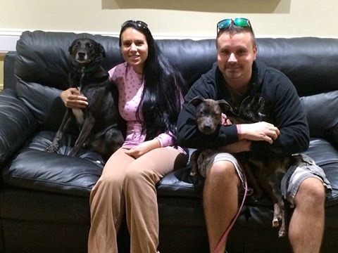 NICKI knows how lucky she is! NICKI, one of our Catahoula-Mix pups (shown in her new Dad's lap), is feeling quite blessed these days. From shelter - to boarding - to parvo survivor - to loving foster home - to amazing forever home, she is one lucky pup! We have no doubts that NICKI will get lots of love and care from her new Mom, Dad, and new fur-brother (who is awesome, by the way). Thank you Zydallis family for adopting a rescue dog. Thank you Angela H and Melissa O for being great foster parents.