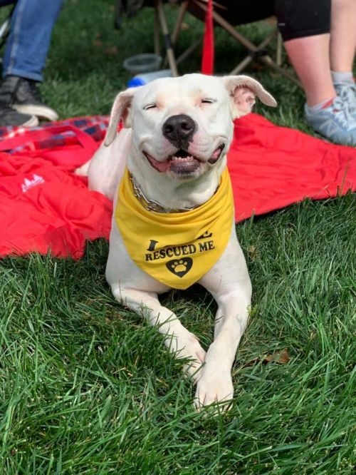 Sugar is a female American Bulldog mix, with an estimated DOB ~Summer/Fall 2013. She weighs 60 pounds and is spayed, microchipped and up to date on vaccinations. All YLDR rescue dogs are kept on monthly heart worm & flea/tick preventatives and are provided a heart worm test annually.